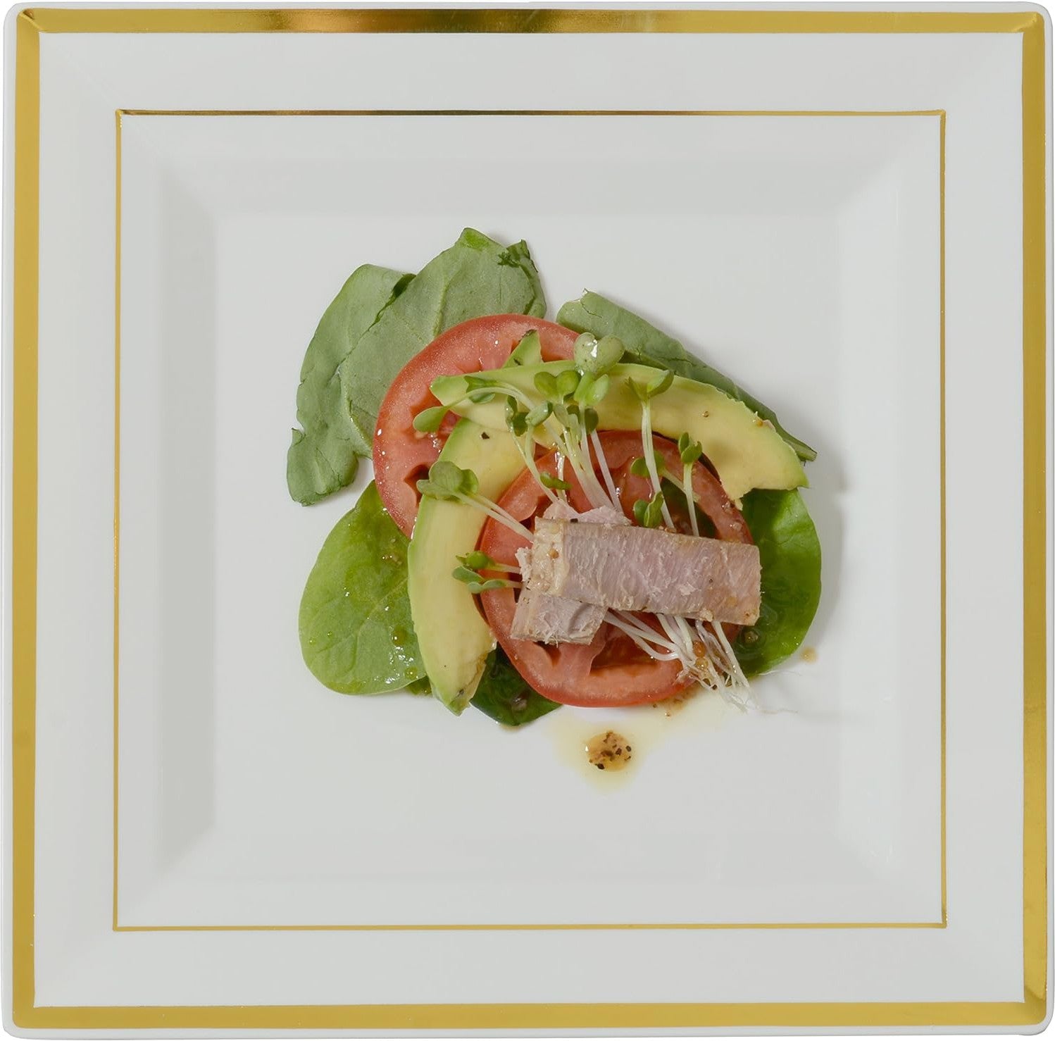 Measuring 10 inches in both length and width, these square dinner plates offer a generous size suitable for serving main courses, entrees, or various culinary creations. The square shape adds a modern and stylish touch to table settings, enhancing the visual appeal of the dining presentation. Featuring a sleek design and clean lines, these dinner plates exude sophistication, making them a perfect choice for formal dining events, weddings, banquets, or upscale gatherings. Their refined appearance elevates the dining experience and complements a variety of culinary creations, adding an aesthetic charm to any meal presentation. Each case contains 10 packs of 12 plates, offering a substantial quantity for dining establishments, catering services, or large-scale events. This ample supply ensures a seamless dining experience, allowing for efficient meal service without the need for frequent replacements.