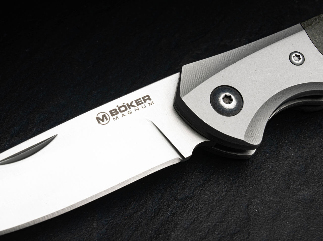 Technically simple, outstanding in material and workmanship, excellent in the hand and pleasing in appearance - these are the simple but difficult requirements for a good pocket knife. The Magnum Nice fulfils all these requirements effortlessly and is a reliable knife for everyday use. The satin-finished 440A blade with hollow grinding is opened by nail nick and securely locked by a sturdy backlock. The matt stainless steel bolsters in combination with the olive green Micarta handle scales provide the necessary robustness and at the same time set a visual accent. With practical deep carry clip (tip-up/r).