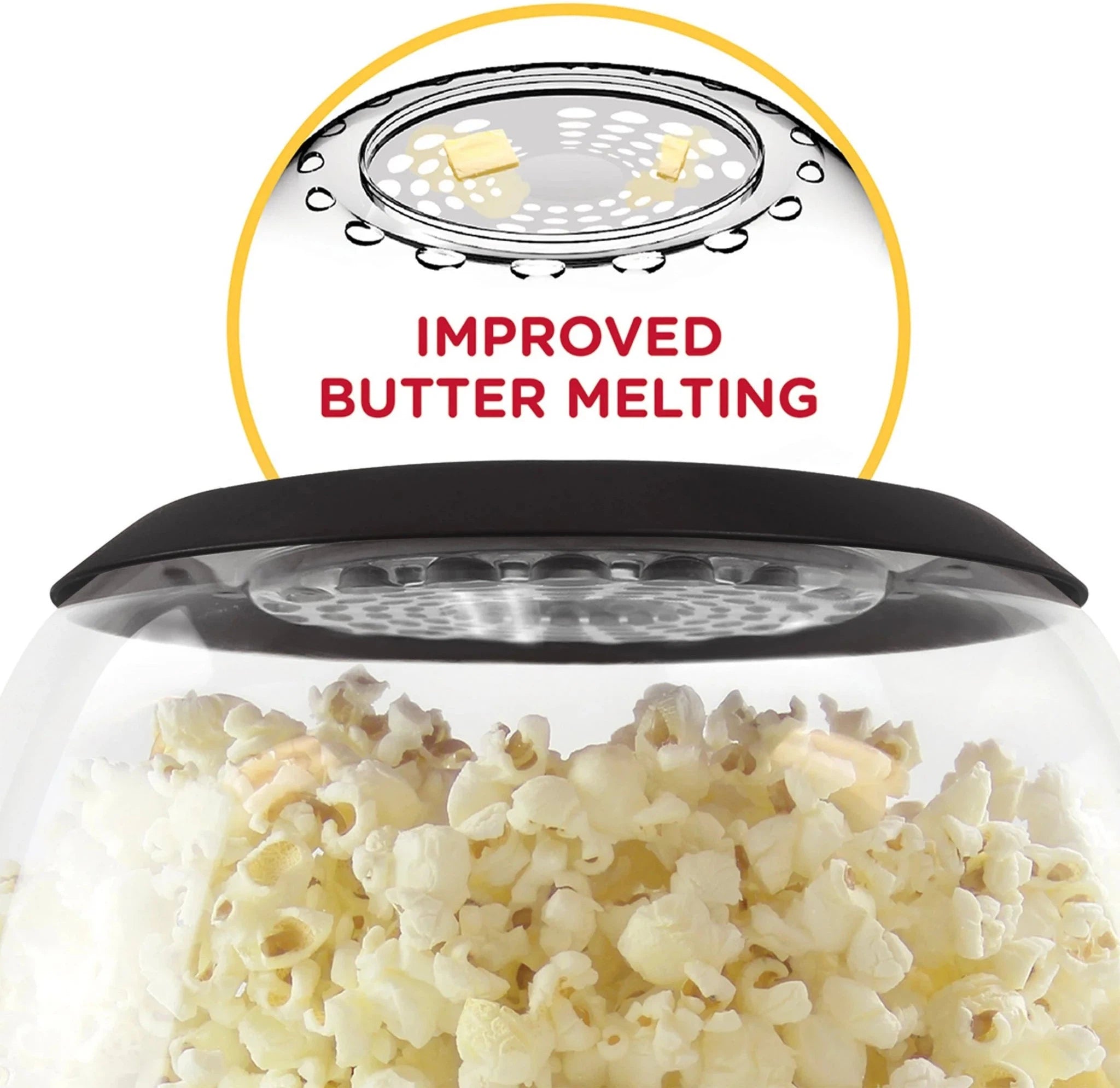 - Improved butter well and snap-on butter cap provide the best butter melting in a Stir Crazy popper.