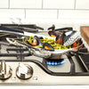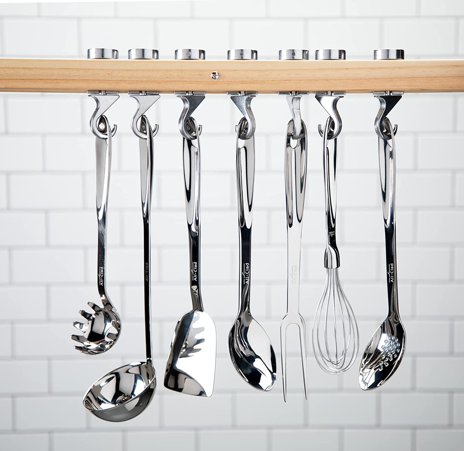 The original stainless tool collection was designed to complement All-Clad cookware. The slotted spoon features small holes to prevent food from falling through. Use for removing vegetables from boiling water or draining sauce off a braised dish.
