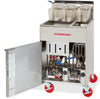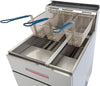 American Range, 50/25 pound fryer, model AF-50/25. All stainless steel front and sides, with heavy gauge stainless steel tank and rated at 40,000 BTU/hr. Standard Millivolt control system with 100% safety shut off and Thermostatic control with a temperature range of 200°F to 400°F. 1-1/4" full port drain valve for easy cleaning.