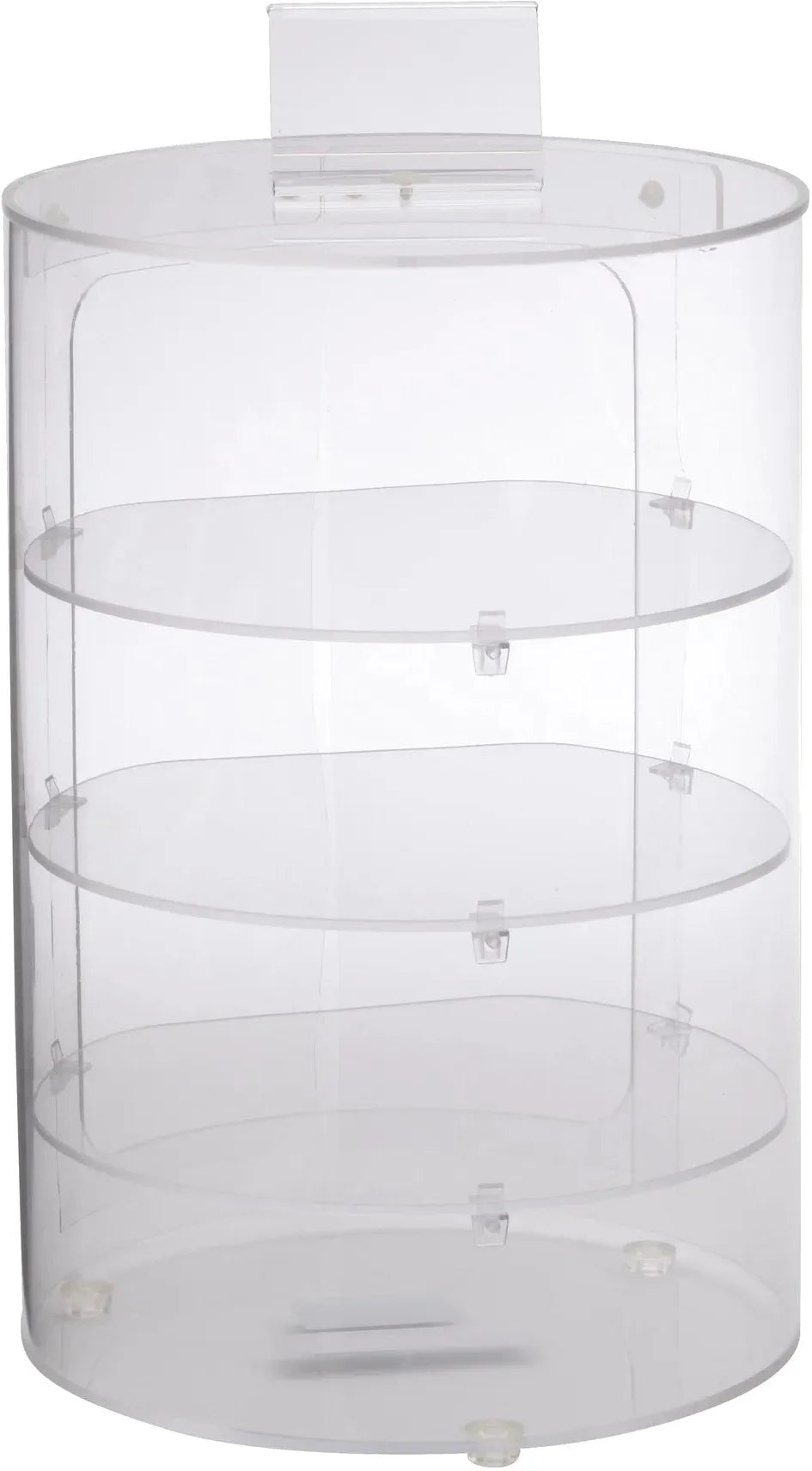 Showcase your baked goods in style with the Antunes Cylindrical Acrylic Display Case. Designed for maximum visibility, this sleek and space-saving display case is perfect for bakeries, cafés, and restaurants looking to present pastries, muffins, and other baked treats in an attractive and hygienic manner. With three levels of display, it can hold up to 12 items, ensuring efficient use of space while maintaining product freshness. A flexible vinyl access flap in the rear allows for quick and easy product retrieval while keeping contents protected. The top-mounted holder provides a convenient space for signage, making it easy to highlight daily specials or promotions. Built with durable acrylic, this display case offers long-lasting performance and a professional aesthetic.