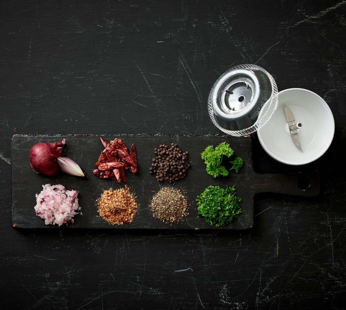 - Grinds & Chops: Efficiently grinds and chops a wide variety of ingredients, including herbs, spices, hard cheeses, cured meats, and more.