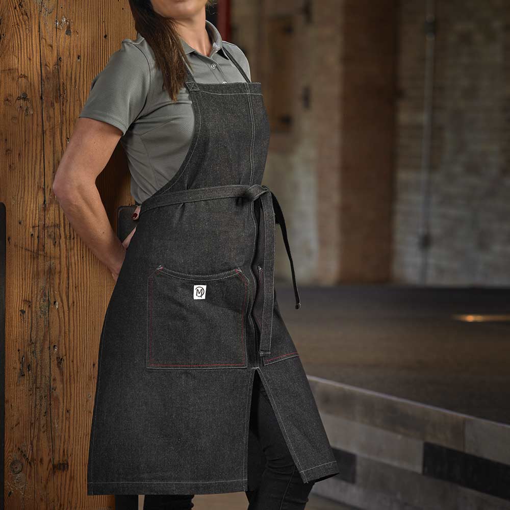 Barfly - 34" x 30" Metro Edge Zephyr Black Cotton Denim Bib Apron - M63203BKD