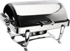 • Fully Retractable Roll Top Lid: This chafer is equipped with a fully retractable roll top cover that opens smoothly to a 180° angle, allowing for easy access from both sides of the table. The cover has a built-in stop at 140° for single-side serving, making it convenient for service staff to manage.