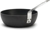 de Buyer Choc Intense 9.4" Crepe Pan – where culinary finesse meets innovation. Elevate your culinary expertise with the de Buyer Choc Intense Crepe Pan, designed to cater to your delicate cooking needs. This non-stick rounded sauté-pan is your trusted companion for achieving perfect results when cooking fish, vegetables, legumes, and grains. It's also your go-to for warming pre-cooked dishes and deftly thickening sauces, all while preserving the natural tastes, colors, and flavors of your ingredients. At the heart of this pan is its robust 4mm forged aluminum construction, making it virtually unbreakable and allowing for gradual, even heating. The bottom, crafted from induction-friendly AISI 430 ferritic stainless steel, ensures compatibility with various cooktops, including induction, adding versatility to your kitchen.