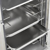 - Bottom Load Slide System: The cabinet is designed with bottom load slides that securely hold pans in place during transport. The spacing between the slides allows for easy loading and unloading of pans, and the sturdy design ensures that the pans do not shift during movement, protecting food from spills or damage.