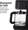 • Drip-Free Carafe: Borosilicate glass carafe with a proprietary lid and spout design to minimize spills during pouring.