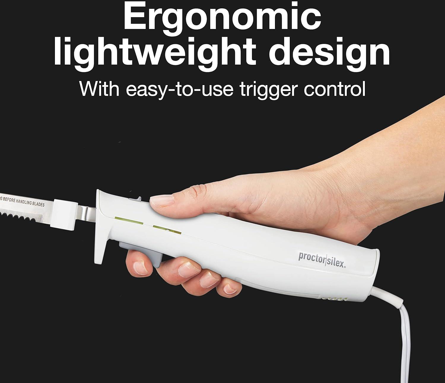 The Proctor Silex Electric Knife 74312G is a versatile and reliable tool designed for effortless slicing of meats, breads, and more. Its lightweight design and ergonomic features make it suitable for both kitchen tasks and crafting projects.