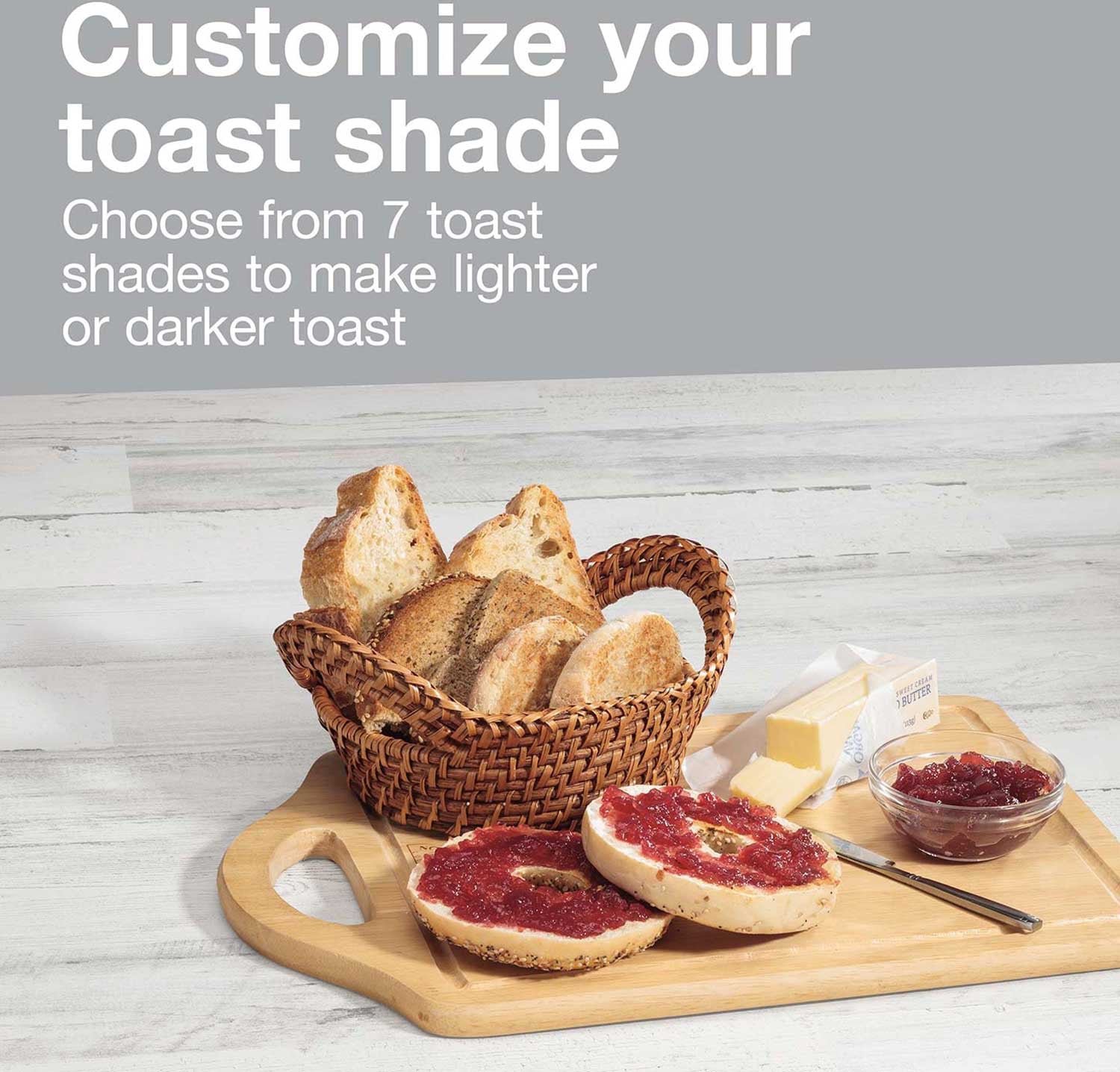 - Shade Selector: Choose from 7 toast shades to get your toast just the way you like it. The integrated cancel button allows you to stop the toast cycle anytime.