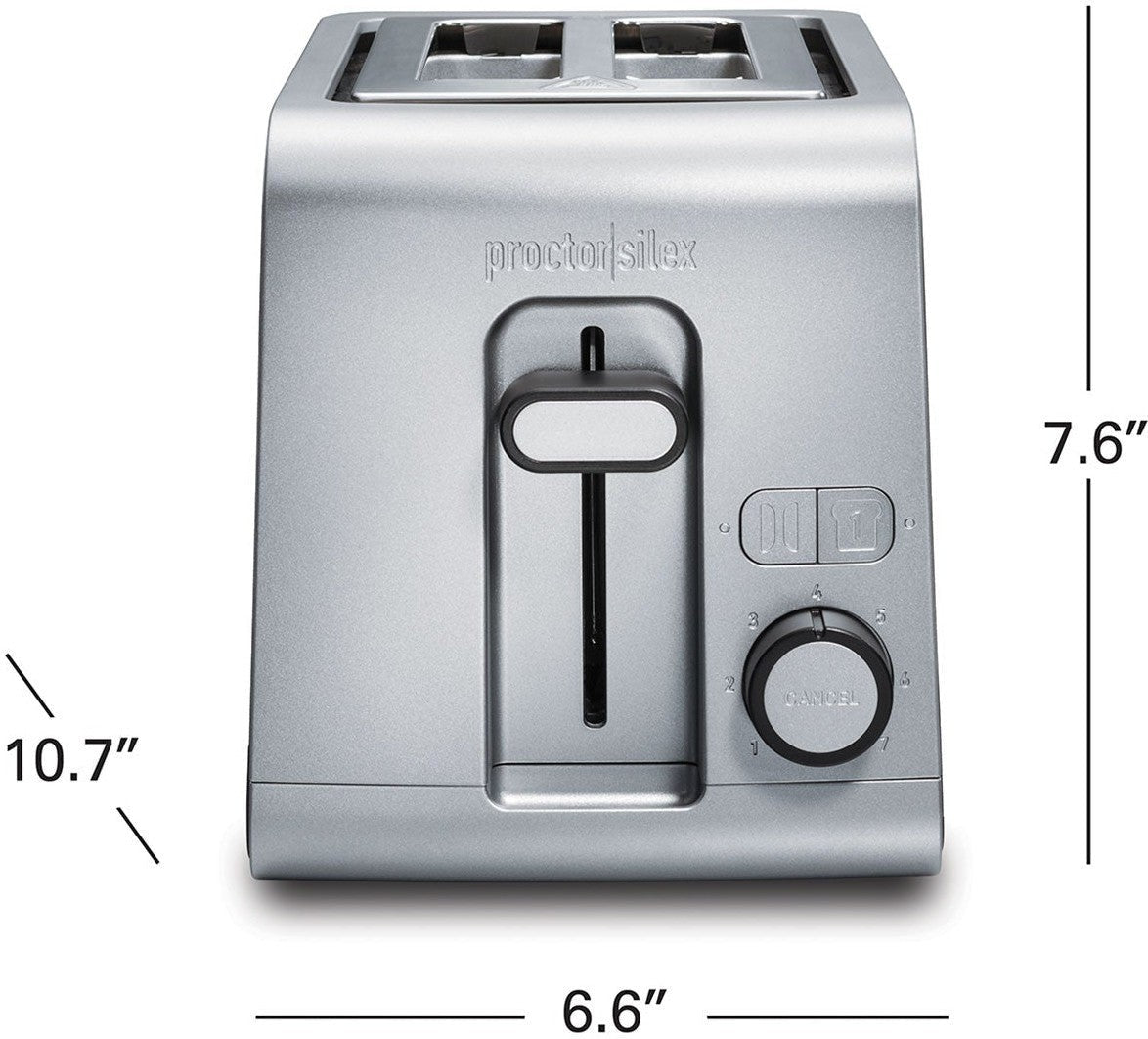 The Proctor Silex® 2 Slice Toaster with Extra Wide Slots is designed to deliver perfect toast every time with its high-quality, user-friendly features. Made from durable materials, this toaster is built to last and look great for years to come. Its Sure-Toast™ One-Slice technology ensures even toasting on both sides, while the Toast Boost feature makes it easy to retrieve smaller breads. The extra-wide slots are perfect for thicker breads like bagels and Texas toast, and the bagel function ensures a perfectly toasted bagel every time. Simple, intuitive controls, along with a front-access crumb tray, make this toaster a must-have for any kitchen.