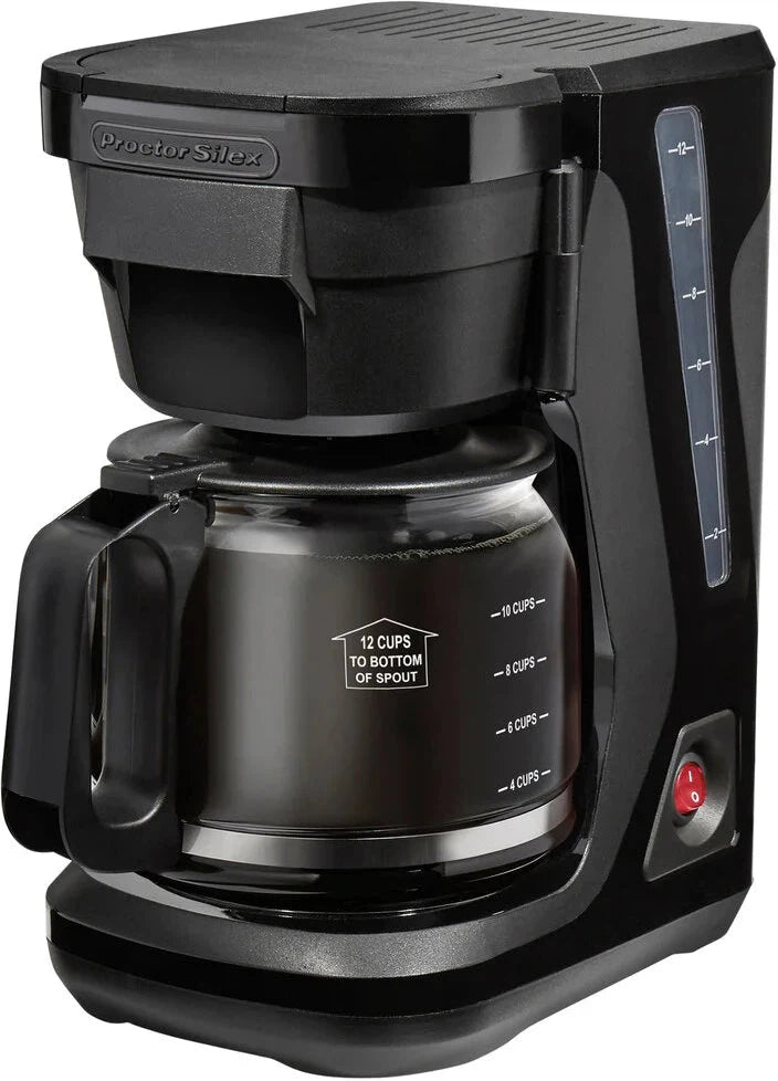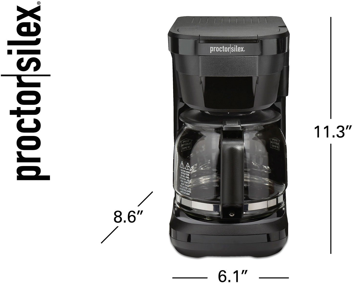 The Proctor Silex FrontFill Compact 12 Cup Coffee Maker combines space-saving design with convenient features, ensuring you enjoy fresh, hot coffee with ease. Designed for efficiency and simplicity, this coffee maker fits perfectly under cabinets, making it ideal for kitchens where space is at a premium. With its user-friendly operation and easy maintenance, it's a perfect choice for home or office use. The Proctor Silex FrontFill Compact 12 Cup Coffee Maker combines practical design with efficient brewing capabilities, making it a versatile addition to any kitchen. Whether you're brewing a full pot or a single cup, its space-saving features and ease of use ensure you enjoy delicious coffee whenever you need it.