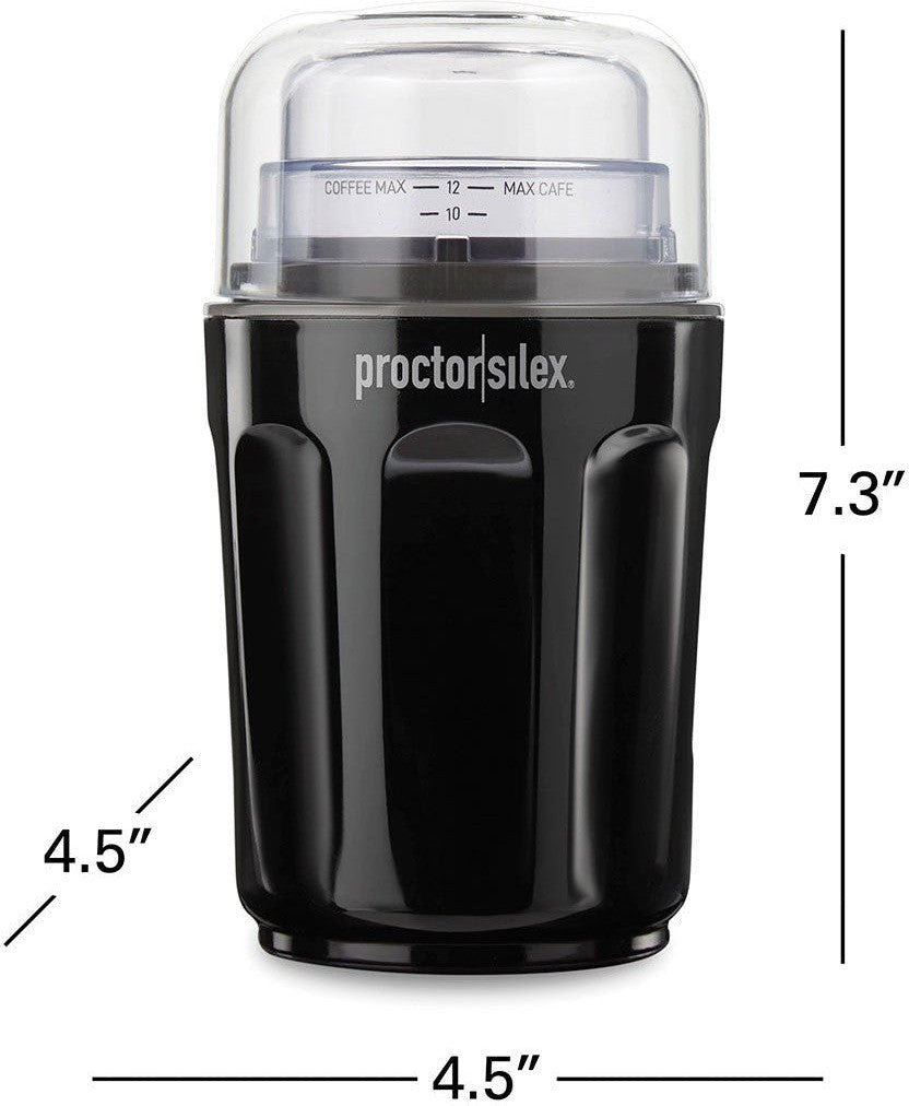 Enjoy freshly ground coffee without the noise with the Proctor Silex Sound Shield Coffee Grinder. Designed with Sound Shield technology, it operates 50% quieter* than other blade coffee grinders, making it ideal for peaceful mornings and quiet evenings at home. This grinder is perfect for anyone who appreciates the aroma and flavor of freshly ground coffee without the disturbance of traditional coffee grinders. The Proctor Silex Sound Shield Coffee Grinder combines advanced Sound Shield technology with powerful grinding capabilities, offering quiet operation and excellent performance. Whether you're preparing a quick cup in the morning or brewing a full pot for guests, this grinder delivers consistently ground coffee beans with minimal noise and maximum convenience.