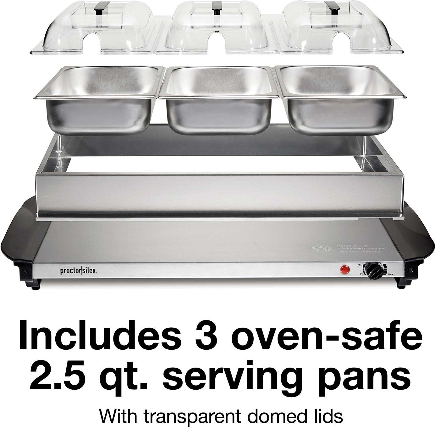 Proctor Silex Commercial - Triple Buffet Server With Domed Lids - 34300RG