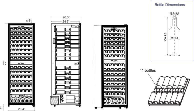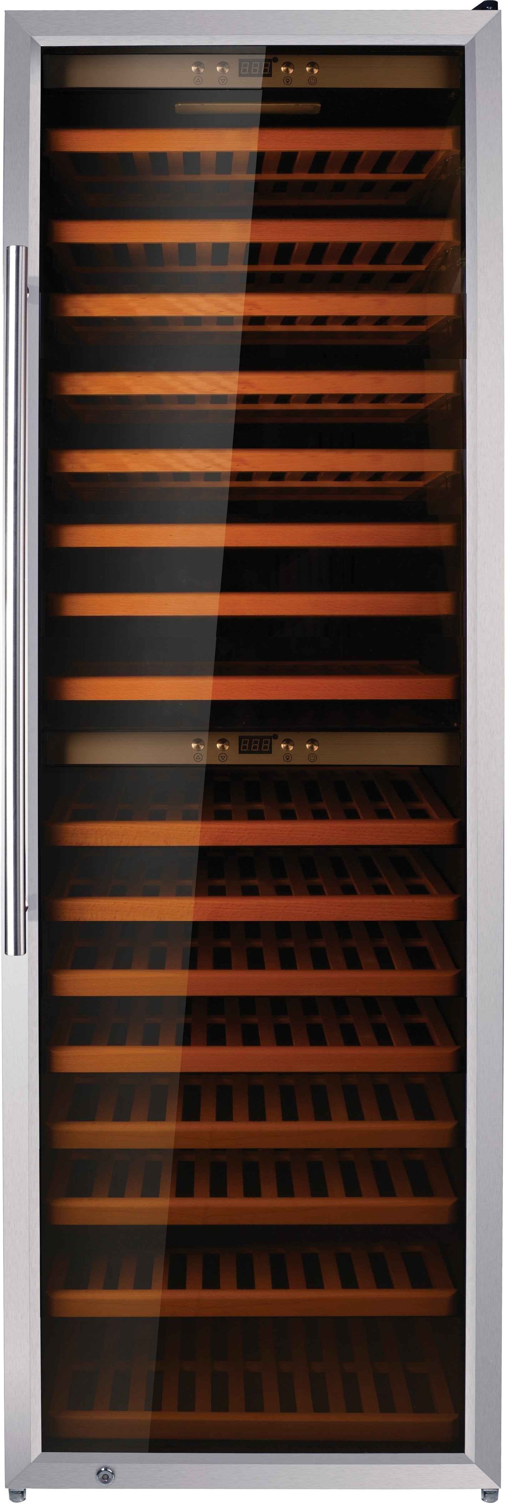 This Dual Zone Wine Cooler is perfect for displaying and merchandising a variety of your finest wines. Ideal for restaurants, bars, and liquor stores, this wine cooler holds a capacity of 181 bottles and the temperature ranges from 3°C - 22°C / 37.4-°F - 71.6°F. The cabinet maintains the appropriate temperature and humidity for storing fine wines.