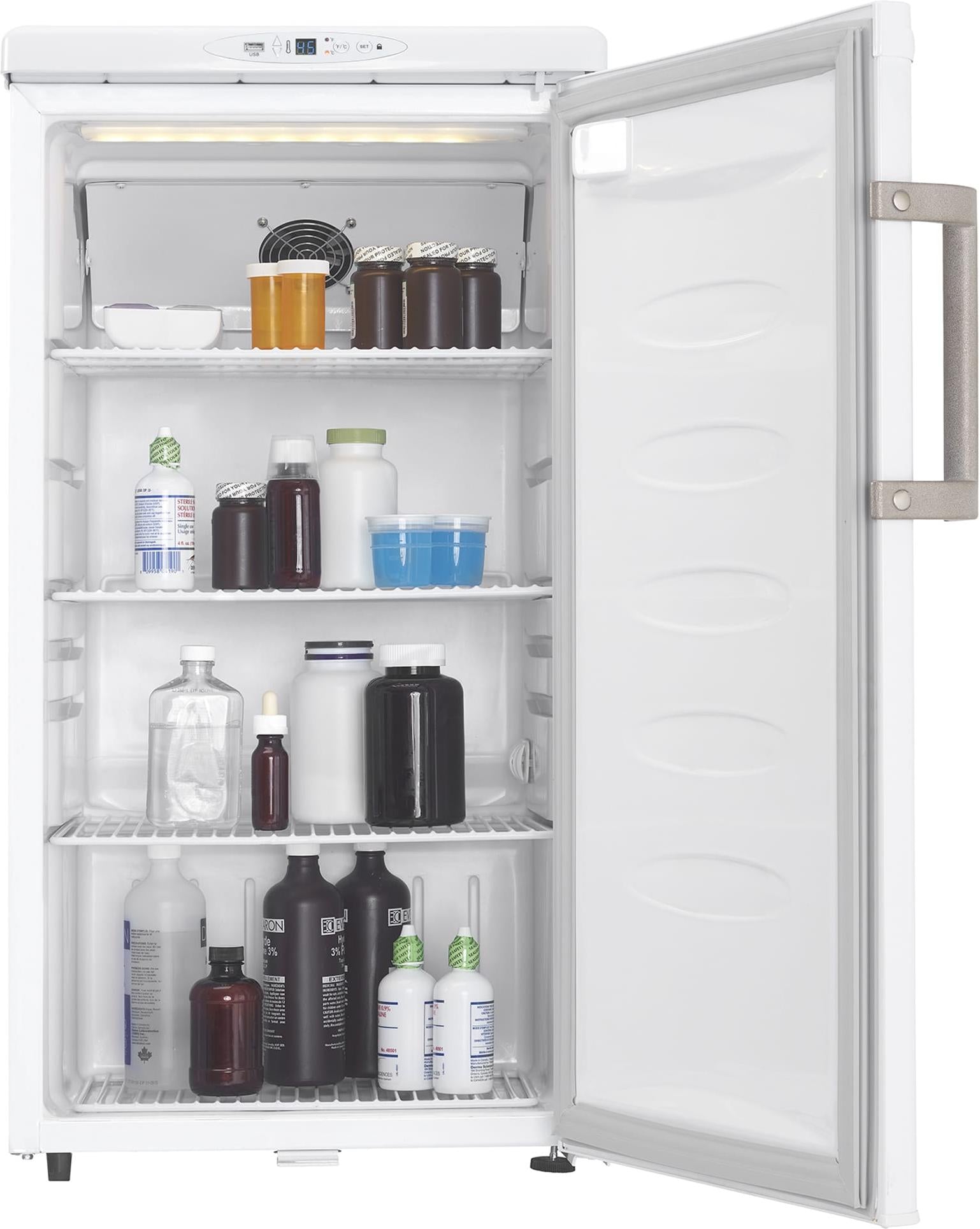 Designed with precision and safety in mind, the Danby 3.2 cu. ft. White Medical Fridge is a reliable refrigeration solution for storing temperature-sensitive items in pharmacies, clinics, research labs, senior homes, and medical offices. Engineered for temperature stability between 2°C to 8°C (36°F – 46°F), this unit features an internal forced air fan for even cooling, an integrated temperature logger, and a high/low temperature alarm to ensure contents remain safe and stable. The compact countertop design is paired with a keyed door lock, hospital-grade green dot power cord, and UL 471 compliance, delivering both performance and peace of mind.