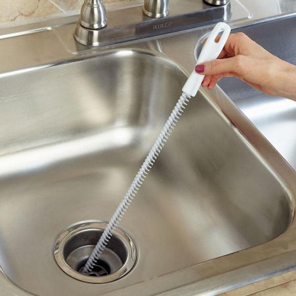 Hair Catching & Sink Overflow Brush goes in and brings out hair and gunk from basins and tubs. The drain cleaning brush simply bypasses the sink stopper, so you don't have to disassemble it when it's time for a cleaning.
