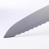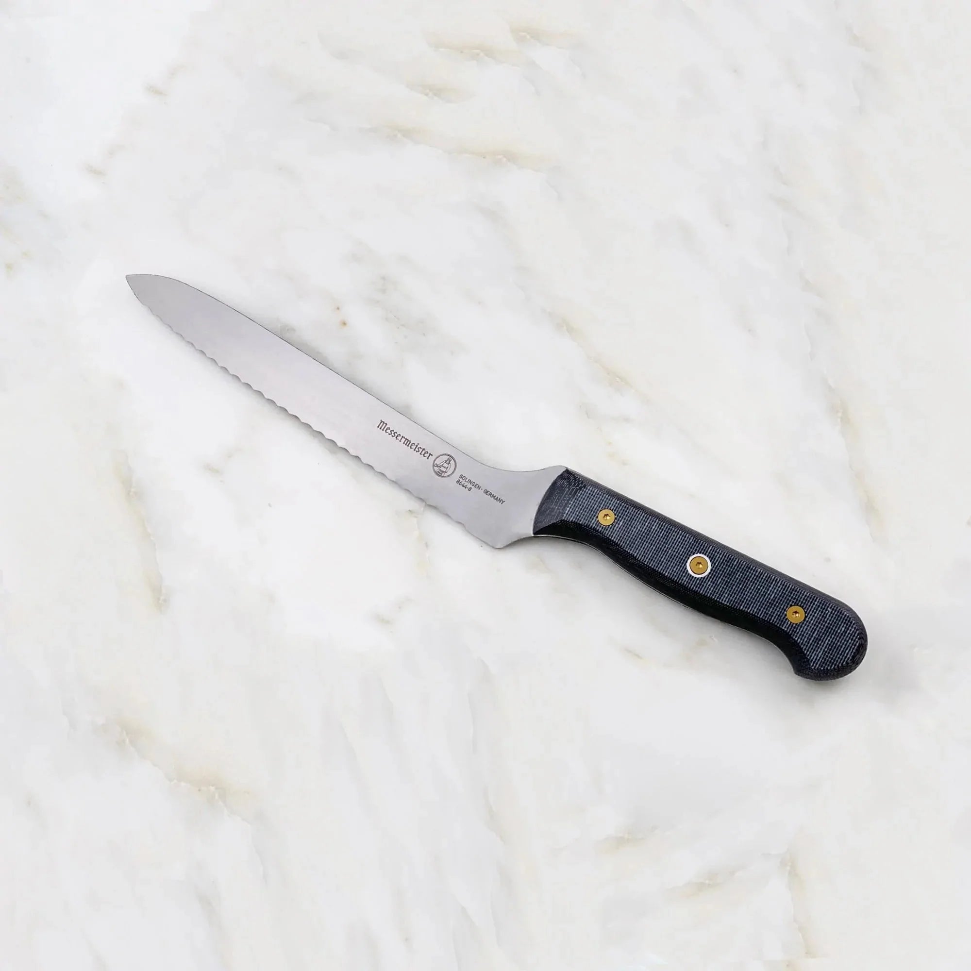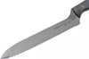 You will gravitate towards the Messermeister Custom 8" Scalloped Offset Knife due to its unique versatility. Designed for pull-cuts, the long rigid blade produces a straight controlled slice with minimal sawing motion. Teeth ground into the edge keep the knife from skating across the surface, while sharp valleys between the teeth slice through your food. The offset feature of this knife provides maximum hand clearance and improved contact with the cutting surface. Use this knife for slicing bread, sandwiches, soft skinned fruits and vegetables.