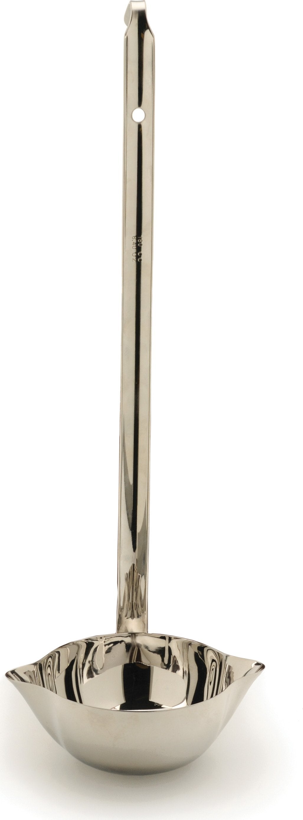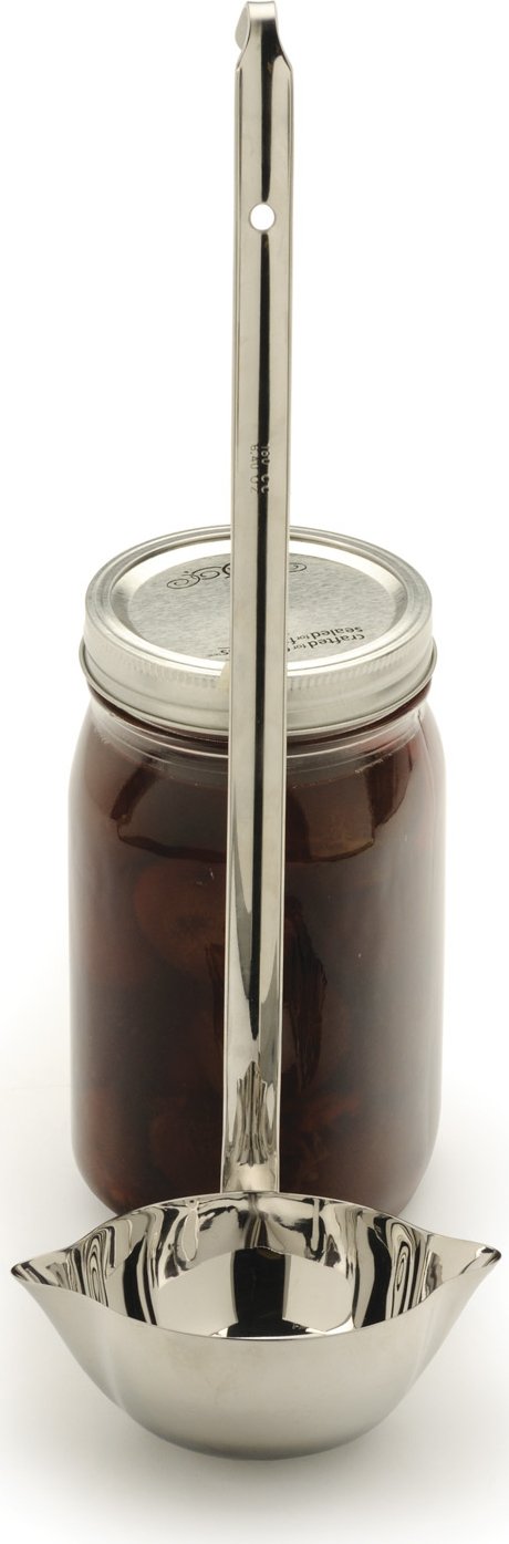Fill canning jars easily and quickly with this dual spout, 1-cup capacity ladle. Also great for serving soup, stew, hot cider or mulled wine. 12″ long handle, 13-1/2″ long overall. Dishwasher safe 18/8 stainless steel.