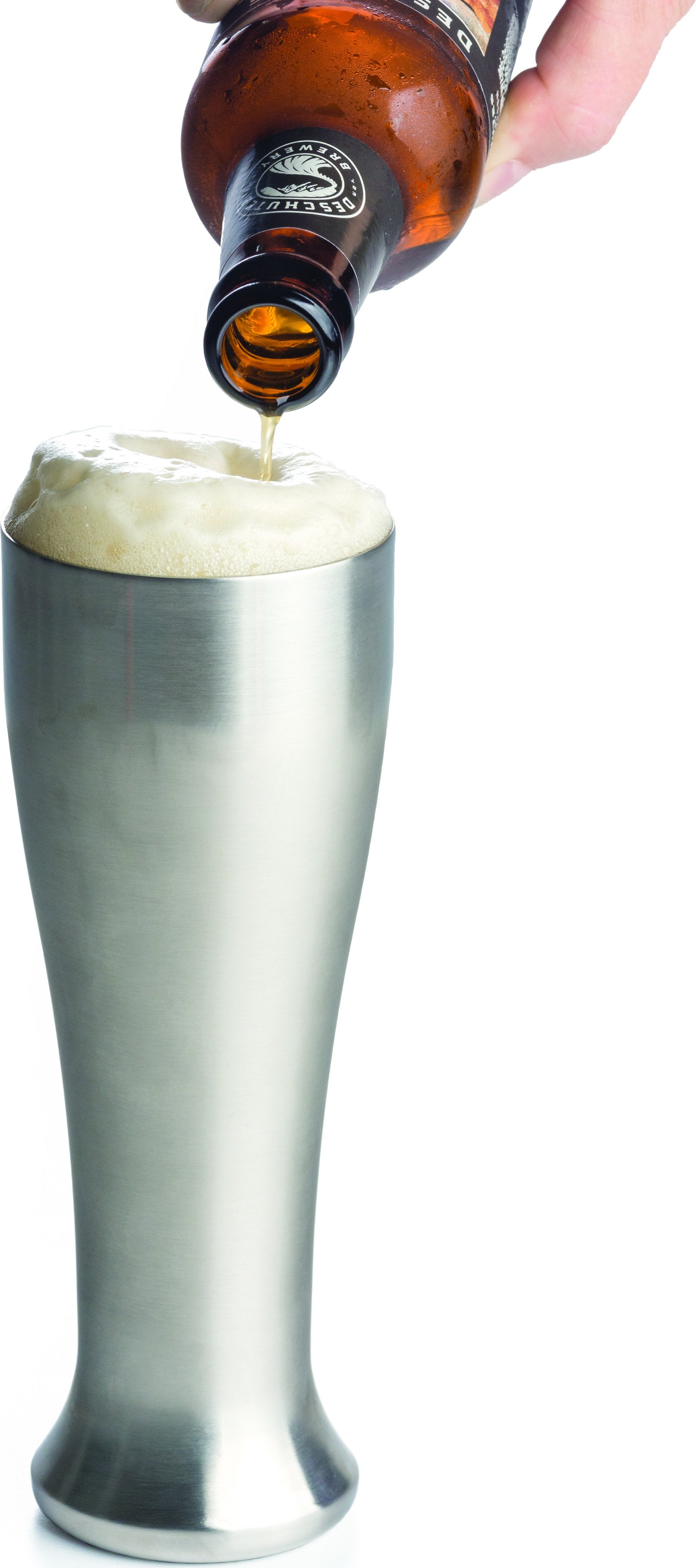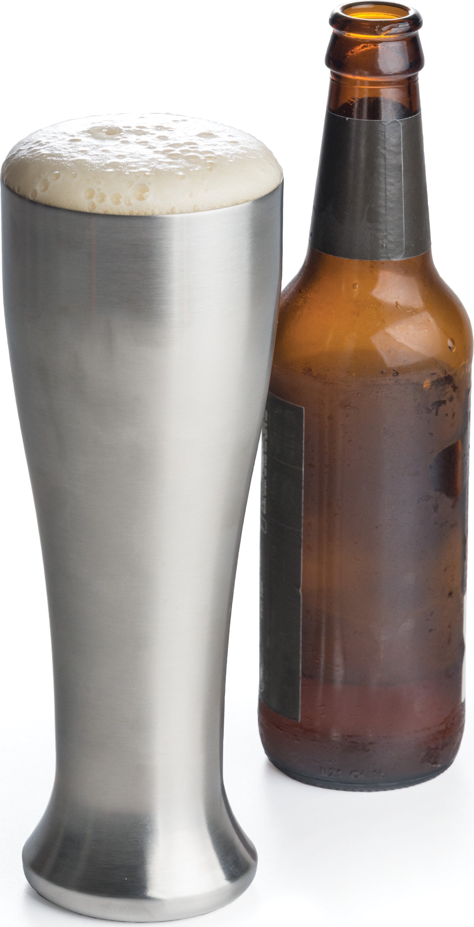 Enjoy a cold beer in our sleek 16 oz. pilsner glass. Made from dishwasher-safe 18/8 stainless steel with satin exterior and mirror interior.