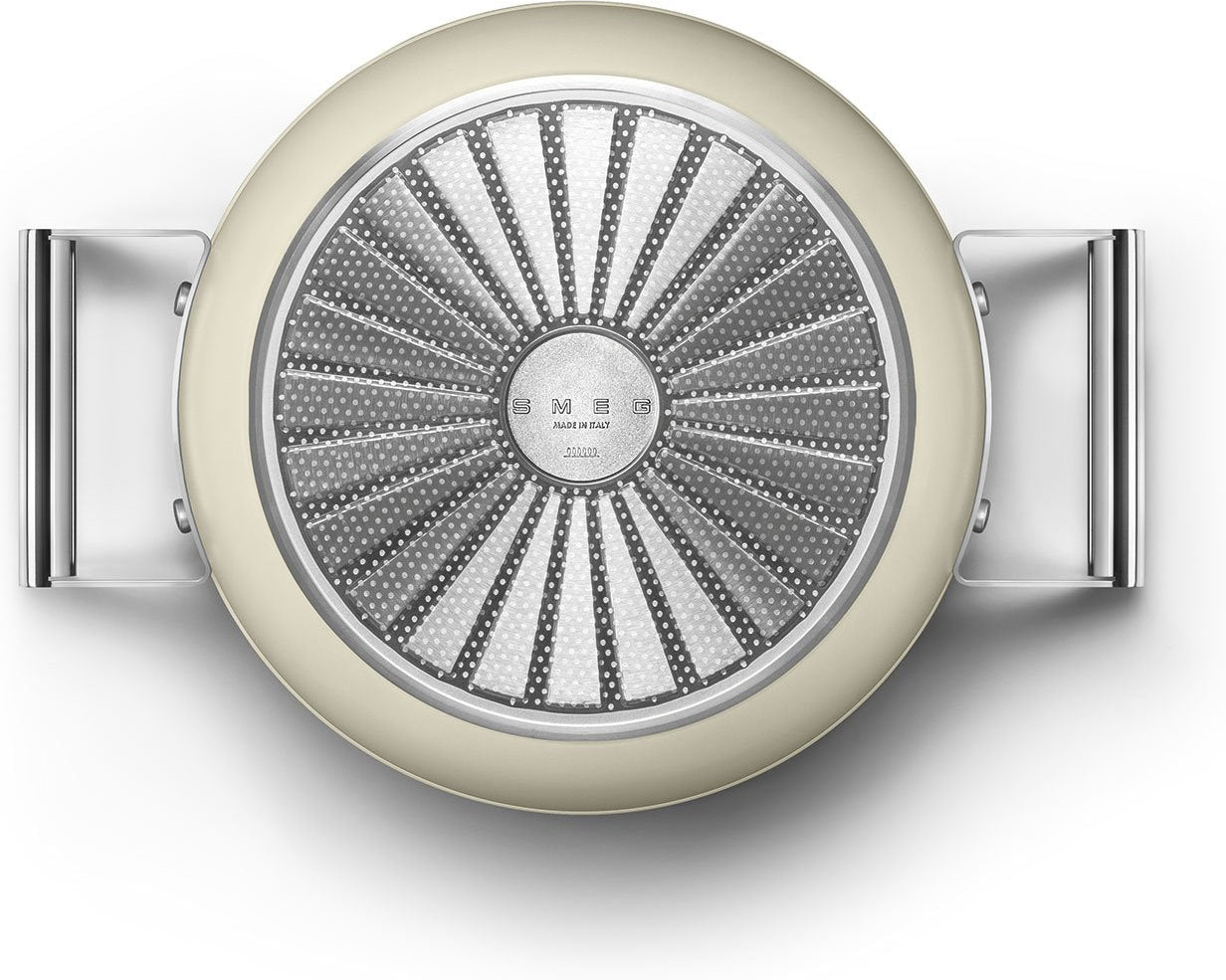 The Smeg cookware range can be put in the dishwasher for easy cleaning. Handle slots ensure optimum water drainage when washing.
