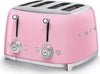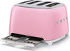 The Smeg 4 Slot Toaster's beautiful powder-coated exterior recalls the bright and cheerful style of 50s design. Engineered to reheat, defrost, and, of course, toast perfectly, this very modern toaster functions with the latest technology and features 6 browning levels. The powder-coated steel body has polished chrome and stainless steel controls and accents.