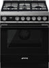 Smeg - Portofino 30" Black Stainless Steel 4-Burner Dual Fuel Range - CPF30UGMBL (Special Order Item)