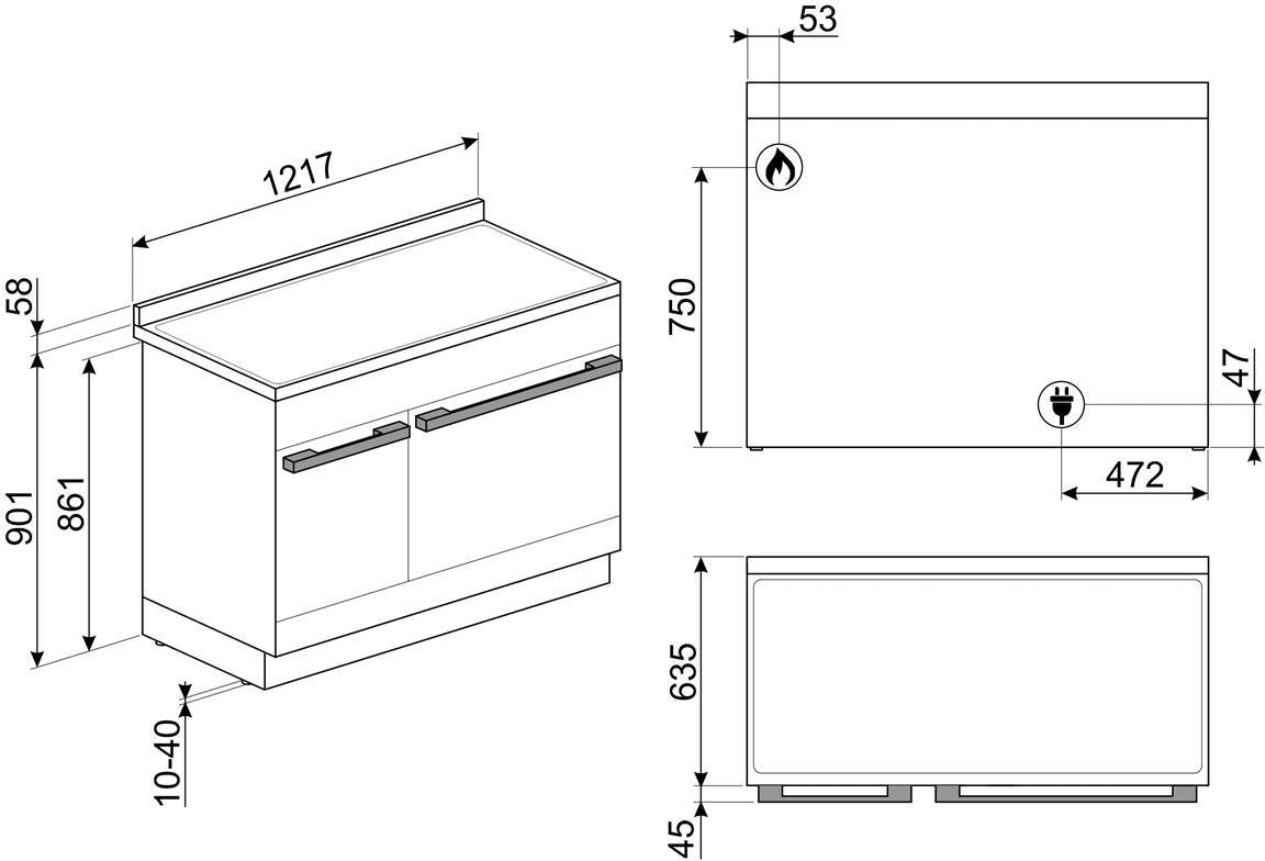 Smeg Portofino 48" Green Stainless Steel 5-Burner Dual Fuel Range - CPF48UGMOG, a captivating blend of style and performance that transforms your kitchen into a culinary haven. This masterpiece boasts a harmonious combination of elegance and functionality, making it the perfect addition to modern households. With dimensions of 50.37" in width, 35.43" in height, and 23.62" in depth, this range is designed to offer ample cooking space while fitting seamlessly into your kitchen layout. The exquisite green stainless steel finish not only adds a pop of color but also signifies the durability that comes with exceptional craftsmanship. Dual fuel capabilities merge the precision of natural gas and electric cooking, allowing you to effortlessly switch between different cooking methods. The five-burner setup, highlighted by an 8,000 BTU right front burner and a dynamic 12,000 BTU right rear burner, provides versatility to bring your culinary visions to life. The Thermo-Ventilated main oven ensures uniform heat distribution, ensuring consistent and impeccable cooking results every time. A static secondary oven adds to your cooking options, accommodating a variety of culinary creations.