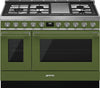 Smeg - Portofino 48" Green Stainless Steel 5-Burner Dual Fuel Range - CPF48UGMOG (Special Order Item)