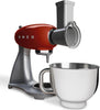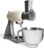 SMEG offers many possibilities, including the use of accessories which are inserted on the front, and will enable you to use your stand mixer to slice and grate. This slicer and grater accessory is to be used with the SMF01 stand mixer (sold separately). Accessories include 4 stainless steel drums for grating or slicing: medium slicer, fine slicer, coarse grater and fine grater.