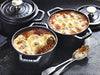 Staub's special matte black enamel interior and self-basting spiked lid guarantee perfect browning and braising for flavor-enhanced food. With their exquisite enamel finish, each piece transitions beautifully from the kitchen to the table. From comfort food to sumptuous suppers, every dish is special when served in Staub.