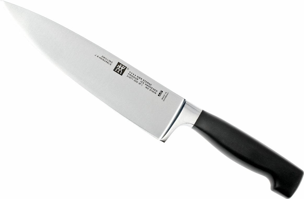 Professional and amateur chefs trust this classic knife for undertaking various tasks in the kitchen. The chef's knife has a wide, strong blade and a straight cutting edge with which you can effortlessly chop vegetables as well as herbs and meat into any shape you wish. The versatile chef's knife from the FOUR STAR series provides you with a professional instrument that can be used for numerous kitchen jobs.