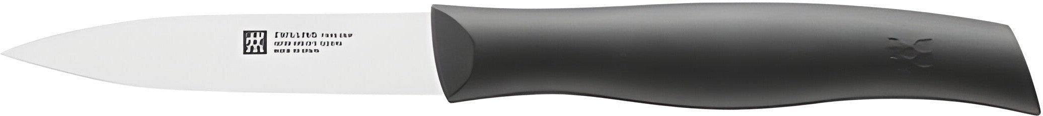 The TWIN Grip 3." Paring Black Knife is ideal for smaller cutting tasks. Made from high-quality stainless steel, the ice-hardened blade provides superior sharpness. Effortlessly peel apples, remove blemishes, and create beautiful garnishes - this lightweight, versatile knife offers fatigue-free cutting with all your fruits and vegetables. The colorful, textured handle is slip-resistant and contoured for a comfortable, steady grip. Prep work is easy with TWIN Grip.