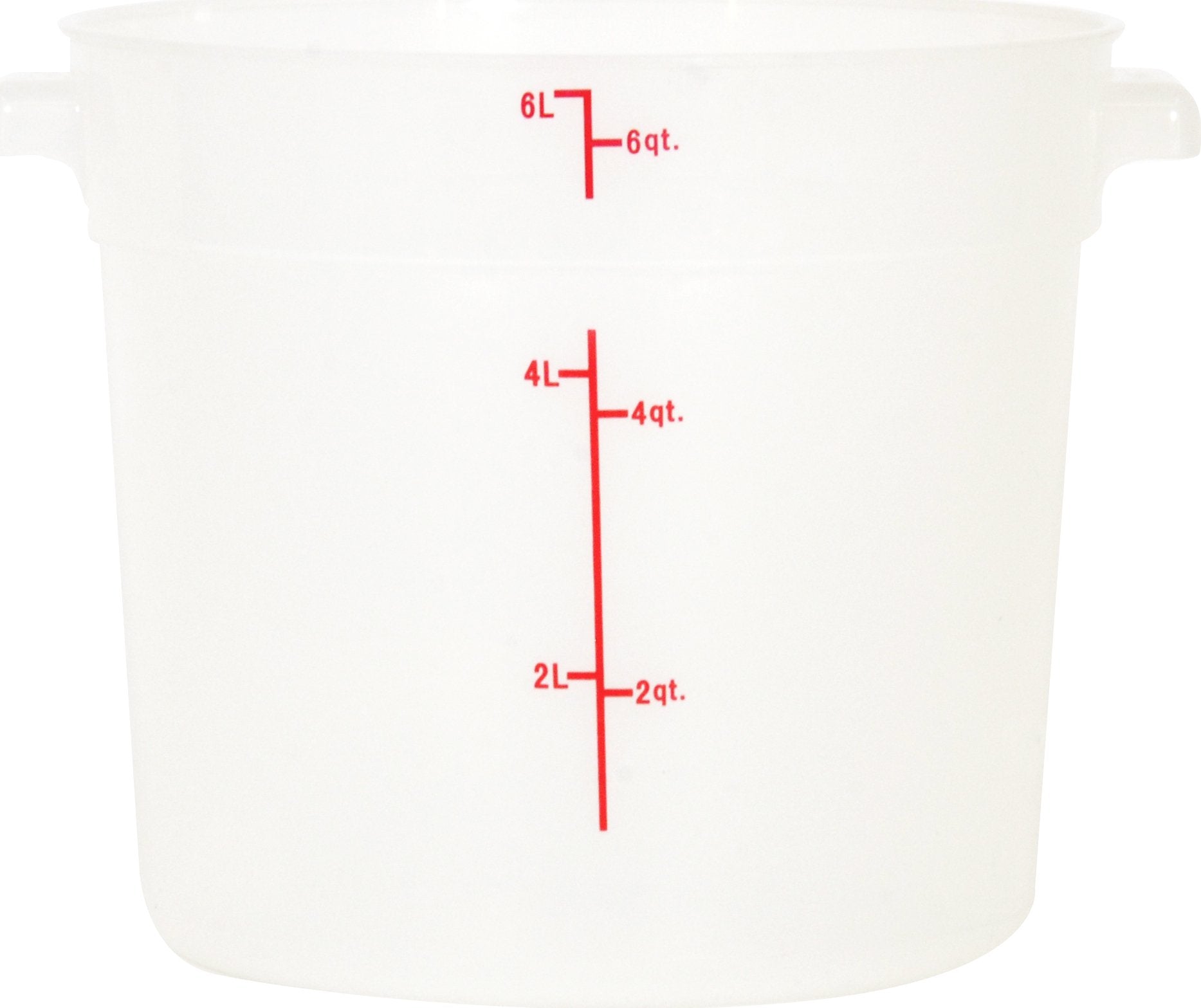 This durable Polypropylene round storage container, provides sanitation and longevity. It is resistant to acids, oil and alcohol. The container comes with both metric and imperial measurements. This container can withstand temperature ranges from -15°C to 80°C.