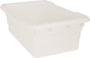This container cross-stacks with a 90° turn and empty containers nest securely for space-saving storage. This meat lug fits standard carts/rack and works well with most conveyor systems. It is resistant to extreme temperatures and is manufactured from high-density polyethylene. Lid is sold separately item #10963.