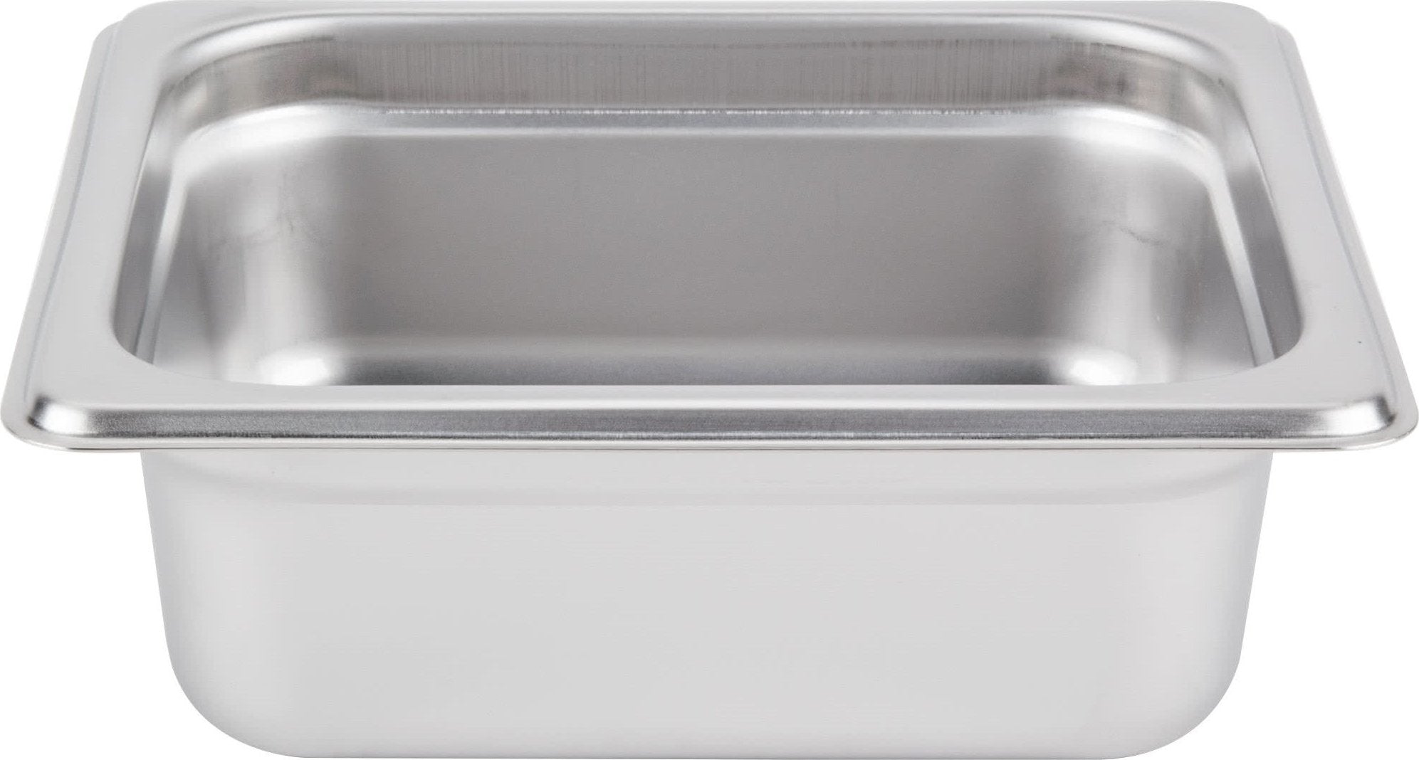 This durable, multi-functional food pan is perfect for any catering and prep services. It can go from warm to cool without warping. It features anti-jamming lines designed for easy, stackable storage. The smooth 24-gauge, 18-8 stainless steel material makes it easy for cleaning too. Perfect for any high-volume restaurant, cafeteria, dining hall, catering business, or any other foodservice establishment, this pan is built to last through heavy commercial use. Use this pan to save money in your commercial establishment as it holds and transports food from your kitchen to off-site locations, or use it to present food in your restaurant's serving area.