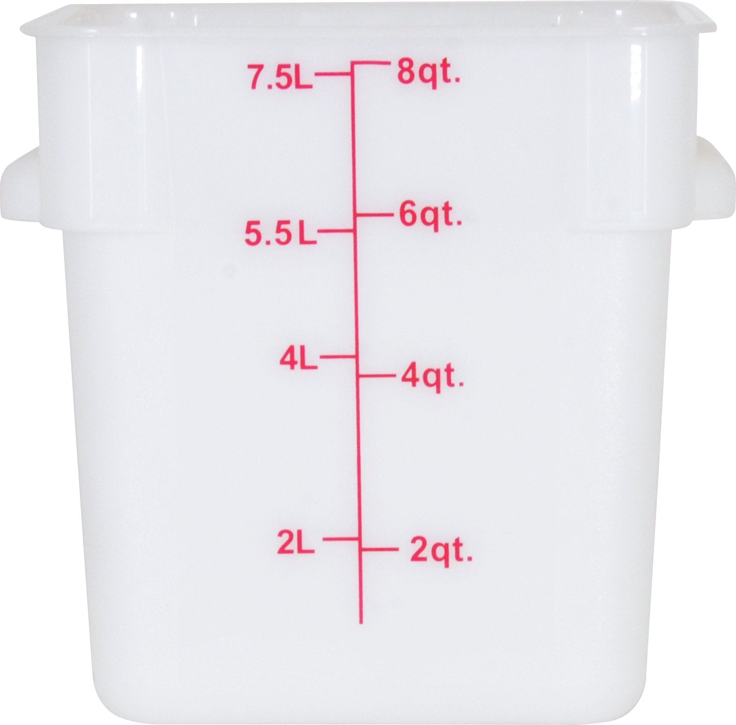 Keep your fruits, vegetables, sauces, spices, dry ingredients, wet ingredients etc. fresh while maintaining proper portions with this square food storage container. It is durable and offers reliable portion control with the coloured measurements that are printed directly on its exterior surface. Measurements are in both metric and imperial. Its square design maximizes storage space when compared to a round container. In addition to being dishwasher-safe, it can withstand temperature ranges from -15°C to 80°C.