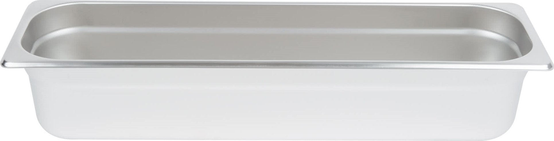 This durable, multi-functional food pan is perfect for any catering and prep services. It can go from warm to cool without warping. It features anti-jamming lines designed for easy, stackable storage.The smooth 24-gauge, 18-8 stainless steel material makes it easy for cleaning too. Perfect for any high-volume restaurant, cafeteria, dining hall, catering business, or any other foodservice establishment, this pan is built to last through heavy commercial use. Use this pan to save money in your commercial establishment as it holds and transports food from your kitchen to off-site locations, or use it to present food in your restaurant's serving area.