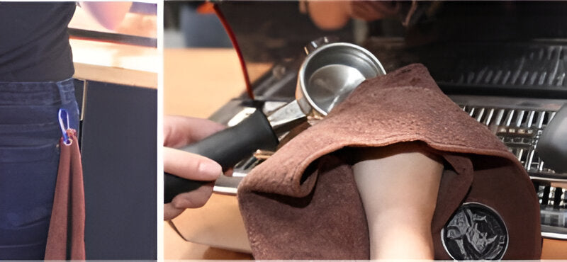 Coffee Cloth with Belt clip: This heavy duty microfiber cloth has been designed to quickly and easily remove coffee waste from group handles and related parts of the machine with ease. Complete with "belt clip" this generous knee length cloth makes keeping your machine in A1 condition a breeze. Measures 310 mm x 600 mm /12 inches x 24 inches