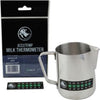 The Rhino Coffee Gear Accutemp stick-on thermometer can be placed on your milk frothing pitchers to help achieve a perfect temperature result every time! The state-of-the-art liquid crystal indicators turn from green to black as you steam your milk and the indicated temperature is achieved. Unlike standard analogue thermometers which tend to have a slight time delay as they come to temperature, the Accutemp is lightning fast, and never in your way with its super thin design.