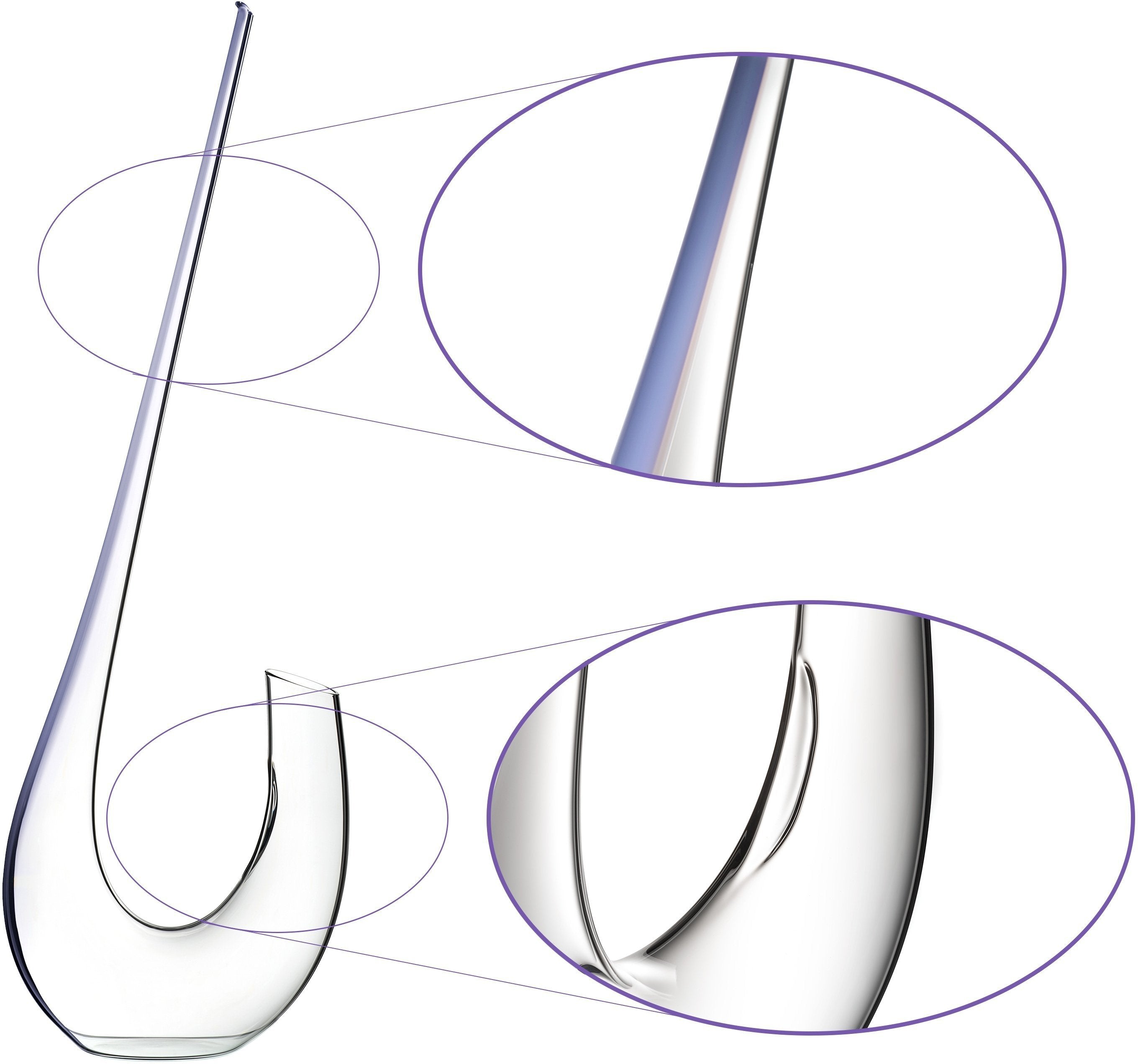 This piece features a lavender purple stripe through the design, achieved by introducing a rod of purple crystal into the molten glass before the decanter has been formed. The RIEDEL Bottle Cleaner cannot be used with this product as they can become lodged and unable to remove.