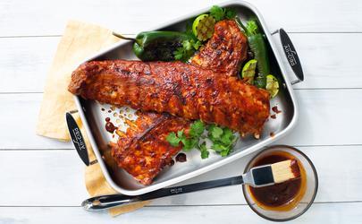 The All-Clad Stainless Outdoor Roaster has a large, flat cooking surface ideal for grilling larger quantities of meat, seafood or vegetables. Low, rounded sides contain foods but allow for easing turning, while the large perforations add delicious smoky flavour. Oversized handles allow for a firm, comfortable grip, even with oven mitts, for safe transport to and from the grill.