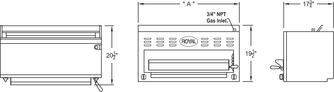 Royal 48" Salamander Broiler is a versatile and high-performance addition to any commercial kitchen, designed to provide precise and efficient broiling for a variety of dishes. With its 48-inch width, this salamander broiler offers ample cooking space, making it suitable for restaurants, hotels, and other foodservice establishments. The broiler features powerful top-mounted burners that produce intense, focused heat for quick and even cooking results, making it ideal for browning, melting, caramelizing, and more. The unit's adjustable cooking rack allows for flexibility in positioning dishes, ensuring that every meal is prepared to perfection.