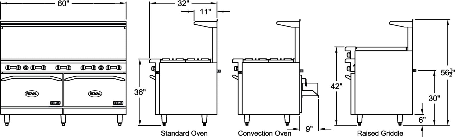 The Royal 60" Delux Stainless Steel Gas Range with Two 26.5" Wide Ovens is the epitome of culinary excellence, meticulously crafted for professional chefs and passionate home cooks. Engineered for durability and precision, this gas range boasts a sturdy stainless steel build that not only adds a touch of sophistication to your kitchen but also ensures long-term reliability and easy cleaning. With the luxury of two expansive 26.5" wide ovens, you have the freedom to concurrently bake, roast, and broil a diverse array of dishes, while the 60" cooktop incorporates robust burners to cater to an extensive range of cooking methods, from high-heat searing to gentle simmering. Whether you're a professional chef aiming to optimize your kitchen's capabilities or an enthusiastic home cook looking to elevate your culinary prowess, the Royal Gas Range is your gateway to culinary mastery, enabling you to prepare a diverse and delectable spread of dishes that will impress even the most discerning palates.