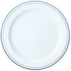 Sabert - 7.5" White Round Plate with Silver Decorative Rings, 144/Cs - 7IMP144S