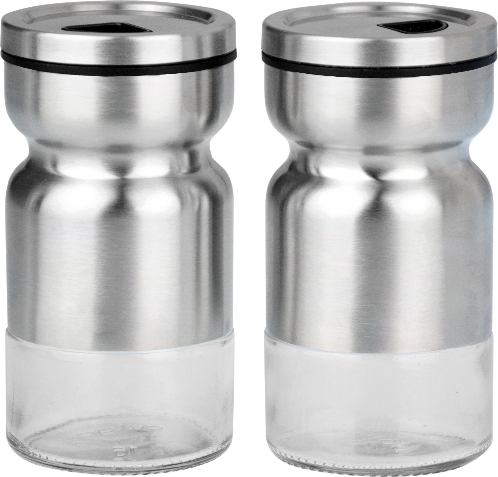This elegant salt and pepper shaker set is made of high quality stainless steel in a satin finish and glass interior. The perfect accompaniment to any place settings at all of your meals. Three hole settings for salt, pepper or spice.