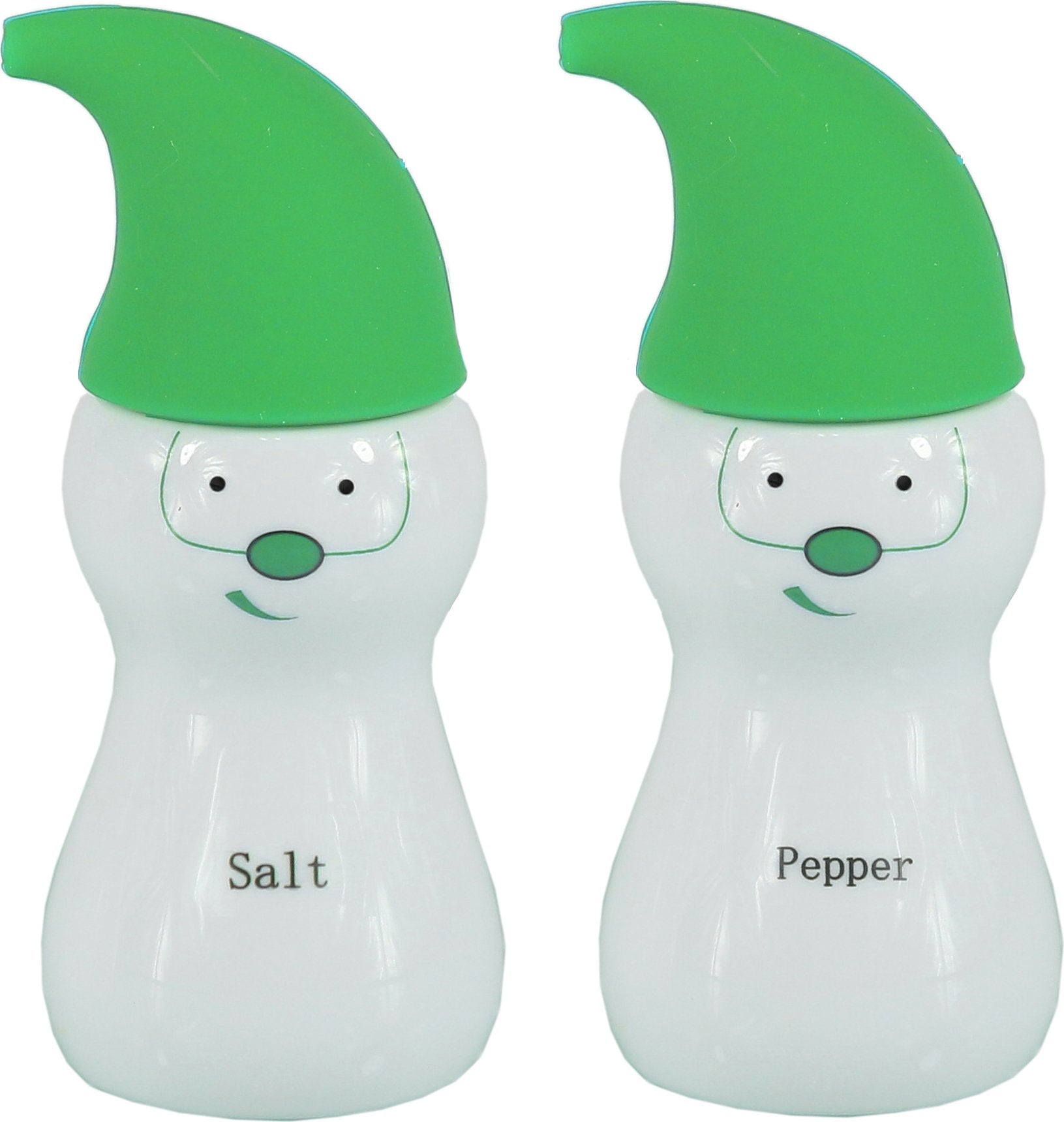 Certainly a conversational piece. Add color to your kitchen with this original salt and pepper set. Made of white porcelain with silicone caps.