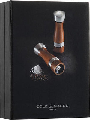 Cole & Mason 8 in. Oldbury Salt and Pepper Mills lend sleek style to any kitchen with an inviting and comfortable outline. Salt and pepper grinders feature a Gourmet Precision Mechanism. The mechanism's specially hardened carbon steel millworks both slice and grind for maximum pepper flavour with 6 preset settings, while the diamond-cut ceramic works have 3 preset grinds for salt from fine to very coarse. Refills are as fast and easy as pulling up on the top of the mill. This Cole & Mason Oldbury Salt & Pepper Gift Set makes a perfect wedding, holiday or house warming gift.