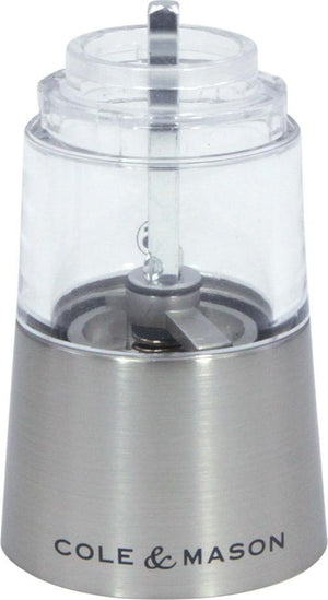 The Cole & Mason 8.5 in. Richmond Electronic Salt and Pepper Mill Set excels in offering a signature statement for any kitchen. This electronic salt & pepper mill gift set uses premium hardened steel to slice and grind, ensuring perfect flavour every time and at any setting. The use of a durable grinding mechanism guarantees a prolonged lifespan and even better results. This remains true even when used with large grained peppers or hard artisanal sea salts. The single touch of a button is all it takes to operate both grinders. From fine and powdery to coarse, this salt & pepper mill gift set is adjustable for the perfect grain. The Cole & Mason Richmond Electronic Salt and Pepper Mill is powered by six (6) AAA batteries.