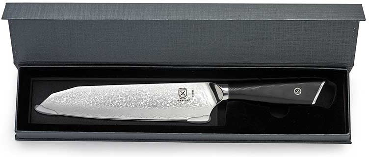 Mercer - Damascus Style 7" Super Steel Santoku Knife with Black G10 Handle - M13786